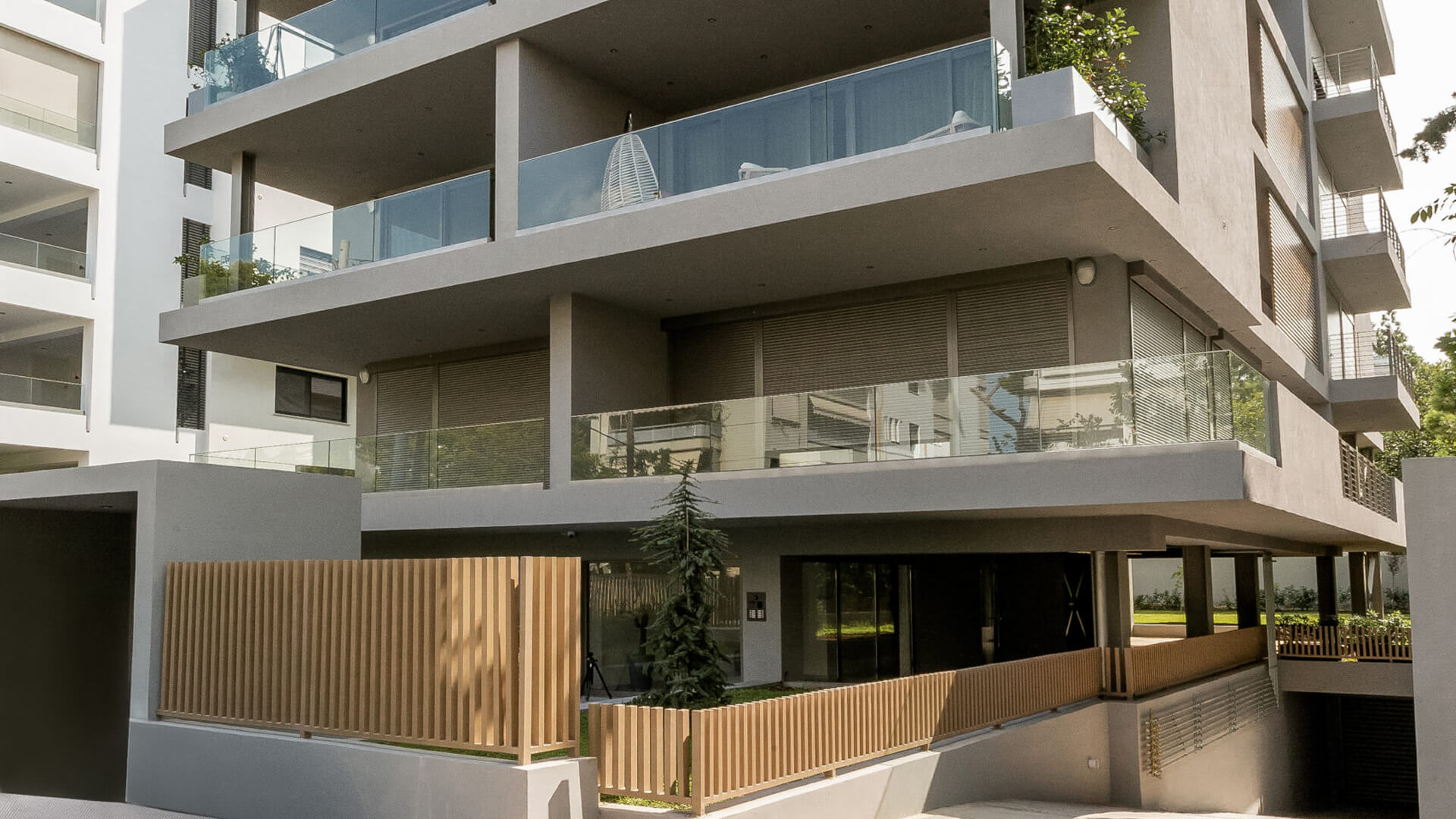 On the ground floor and the first floor, the balconies created provide valuable shade to the interiors, while allowing residents to use the yard even in light rain conditions. At the same time, these platforms – balconies are oriented towards the view.